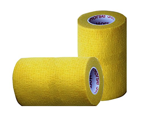 -. Feature : Self-adherent bandaging tape, no clips or pins needed and will not stick to hair or skin. / Elastic bandages that are strong and provide excellent support / Colorful material that is porous, soft, lightweight and comfortable / 2", 3" or 4" Wide x 15 Yards in length / Inner roll is clearly marked with the Prairie Horse Supply Trademark