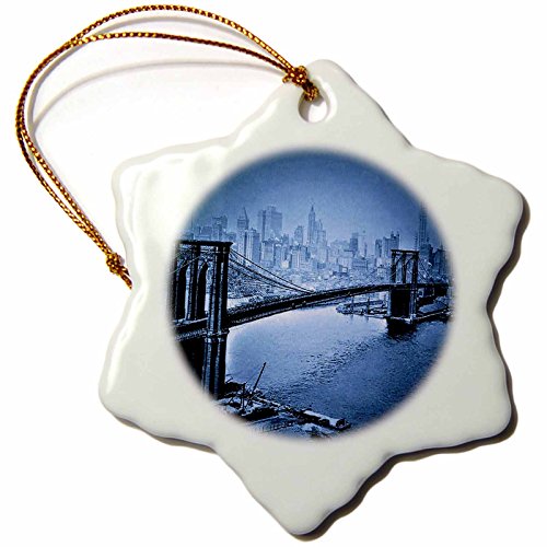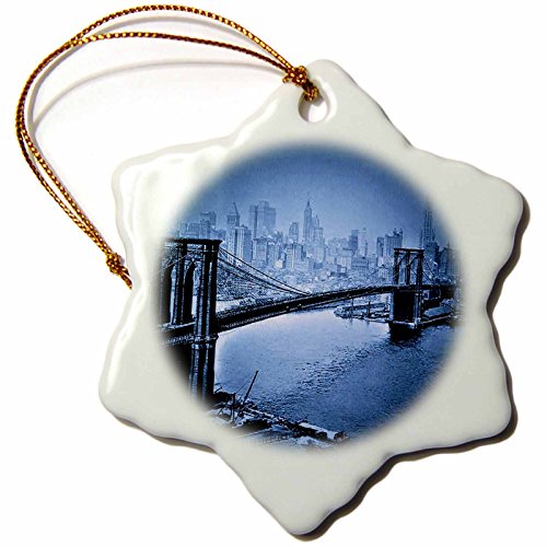 Sandy Mertens Vintage 1915 Brooklyn Bridge in Blue Snowflake Porcelain Ornament, 3-Inch
