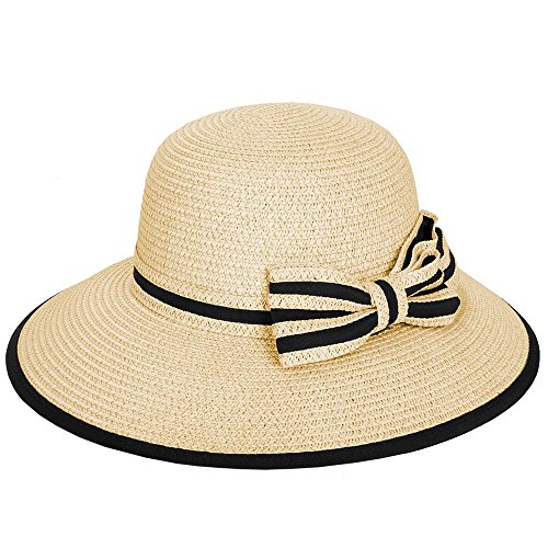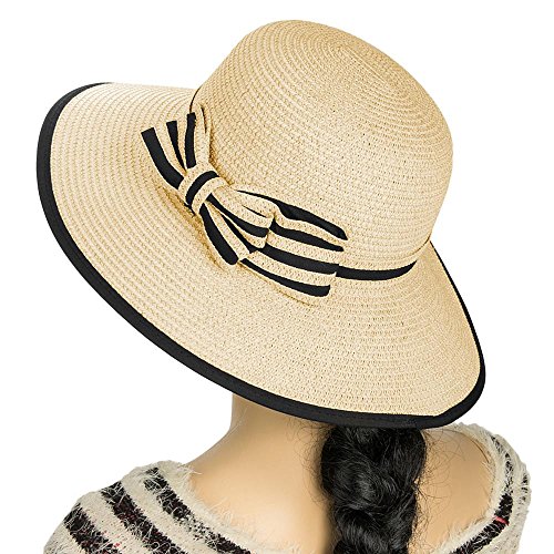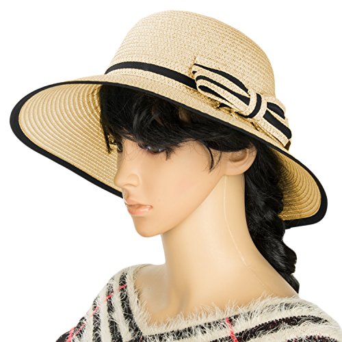 | Women's Vintage Classic Derby Panama Hat Floppy Wide Brim Summer Style Beach Hat |