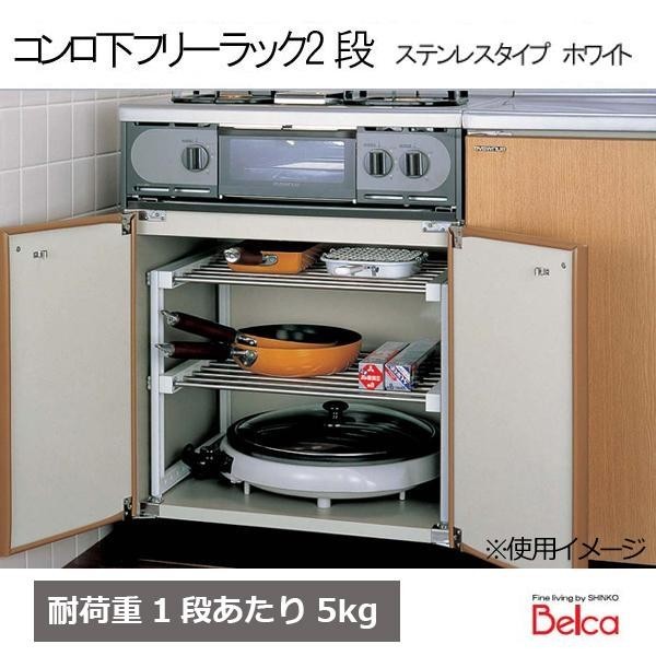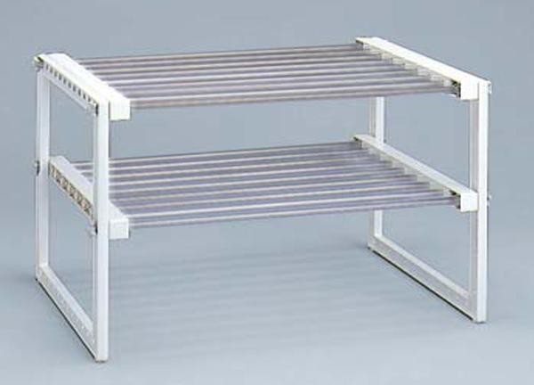 コンロ下用の2段型フリーラックです。丈夫でキズがつきにくいステンレス製です。