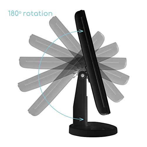 180-Degree Free Rotation. The makeup mirror can be freely adjusted and fixed, ensuring a perfect and comfortable viewing angle. Tri-fold and detachable design makes you could take it anywhere easily.