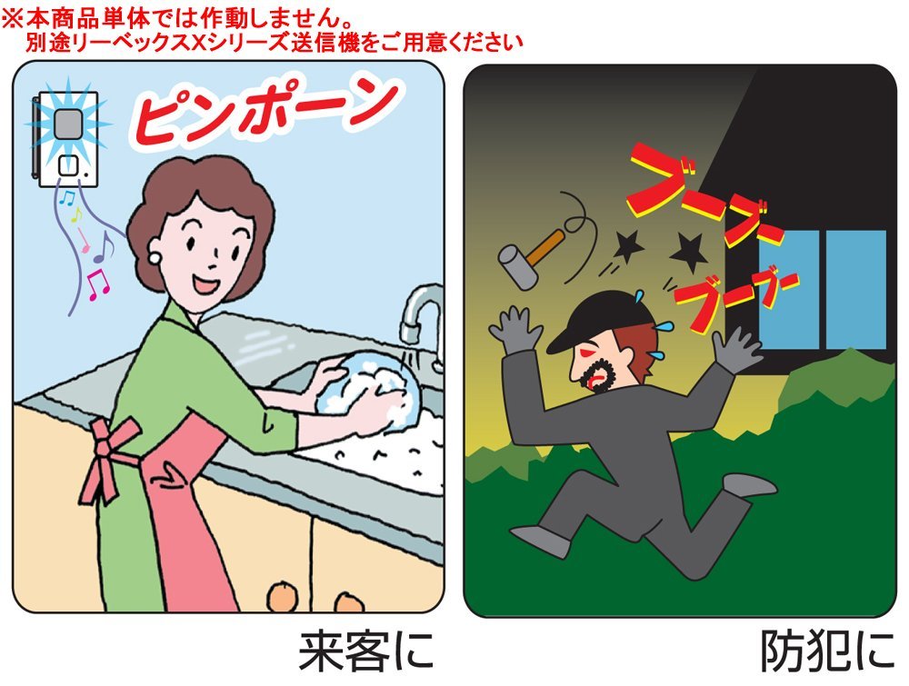 · You can choose sounds from 16 kinds of chime / melody / siren / dog cry.