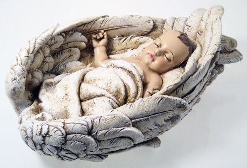 Joseph Studio 63645 Long Baby Sleeping on Back in Wings Garden Statue, 15-Inch