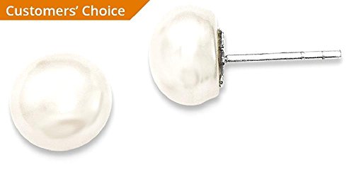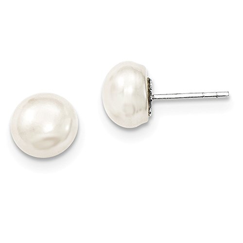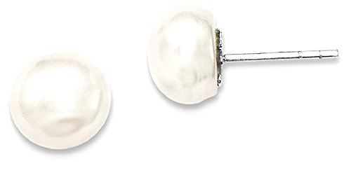 ICECARATS DESIGNER JEWELRY 925 STERLING SILVER WHITE FRESHWATER CULTURED PEARL 10MM BUTTON POST STUD BALL BUTTON STUD EARRINGS