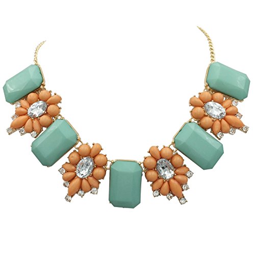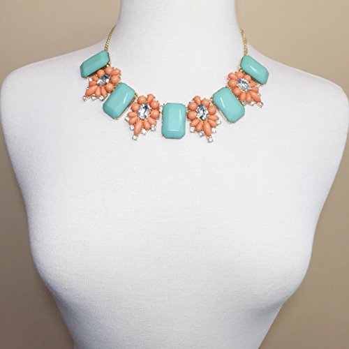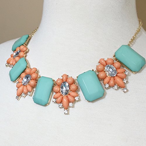 Unique Cluster Statement Boutique Style Necklace (Peach & Mint Green)
