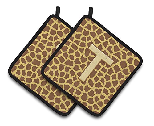 Caroline's Treasures Monogram Initial T Giraffe Pair of Pot Holders CJ1025-TPTHD, 7.5HX7.5W, Multicolor