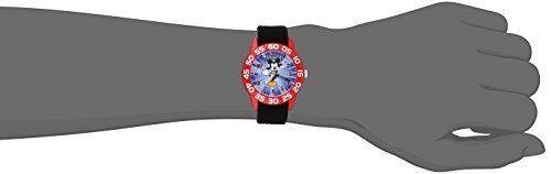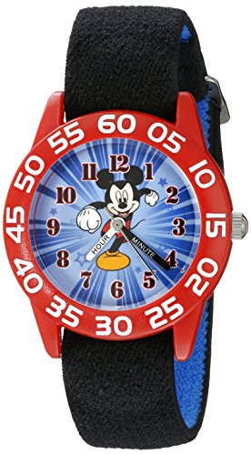 Round watch with numbered bezel featuring blue dial with Mickey Mouse graphic and time teacher hour and minute hands