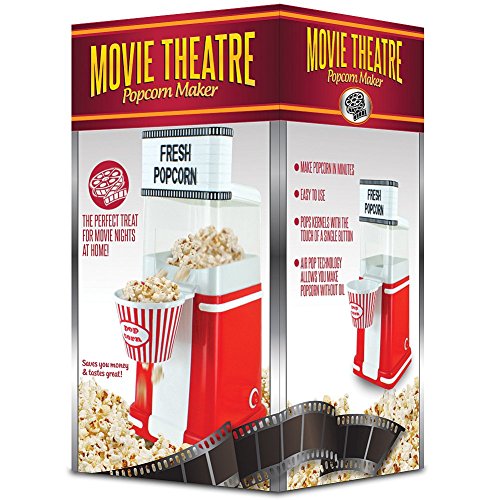 -. Brand : Smart Planet -. Color : Red -. EAN : 0841932117684 -. Feature : Hot air technology uses no oil for fresh-popped goodness and healthy snacking. / Pops up to 1 cup of kernels at a time (4 servings). / Instruction manual includes recipes and care/cleaning information. / 3 ft. long UL®-listed cord. 13" x 9.5" x 6". / Adult supervision required. -. Label : SMART PLANET -. Manufacturer : SMART PLANET -. MPN : 19575 -. PackageQuantity : 1 -. PartNumber : 19575 -. ProductGroup : Kitchen -. ProductTypeName : KITCHEN -. Publisher : SMART PLANET -. Studio : SMART PLANET -. Title : Old Time Movie Theatre Themed Personal Hot Air Popper Popcorn Maker For Home -. UPC : 841932117684