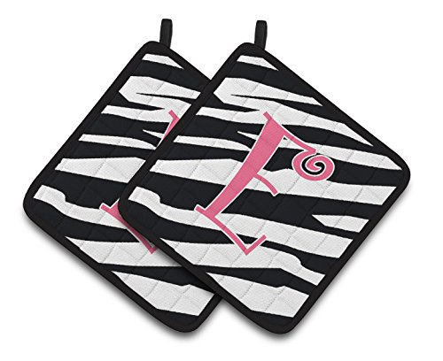 Caroline's Treasures Monogram Initial E Zebra Stripe & Pink Pair of Pot Holders CJ1037-EPTHD, 7.5HX7.5W, Multicolor