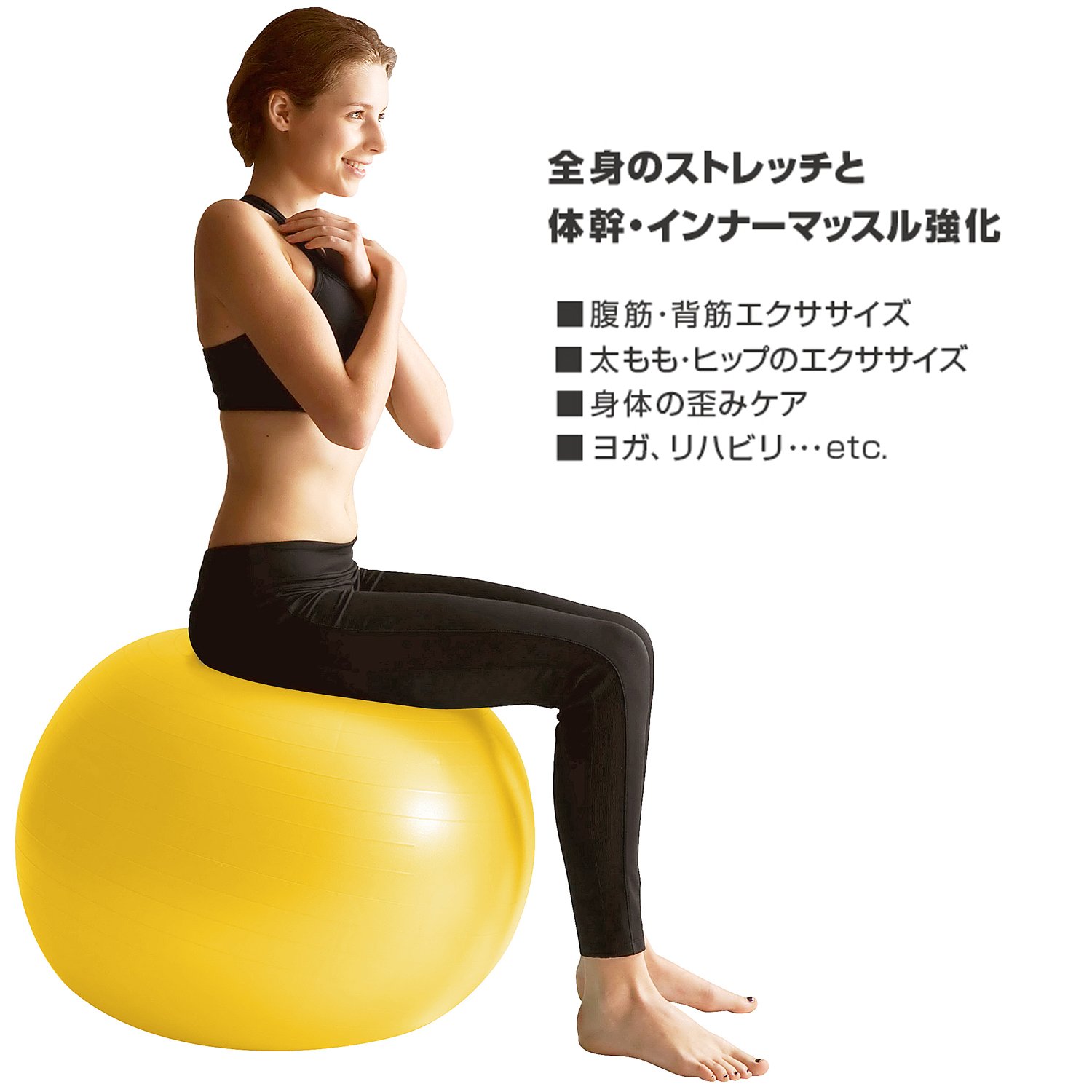 Using the momentum and rolling of the ball, exercises of the abdominal muscles / back muscles and thighs and hips