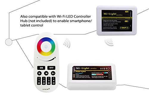This controller can also wifi-compatible, which means it can work with smartphones or tablets if connect with a Wi-Fi LED Controller Hub (sold separately. Search B00E7NTF1Q on Amazon ).