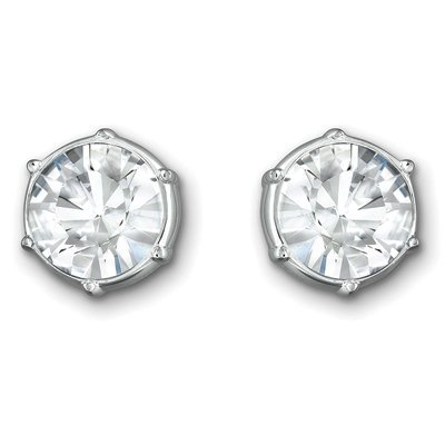 This large pair of rhodium-plated stud earrings is ideal for mixing and matching with other jewelry pieces. Each one is adorned with a simple, bezel-set clear crystal for a brilliant sparkle.Feature