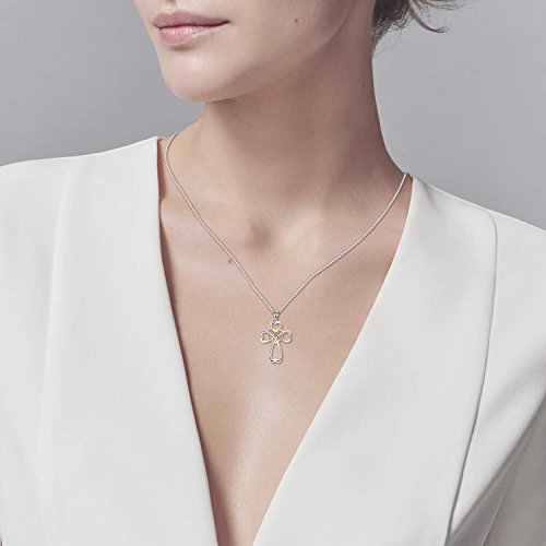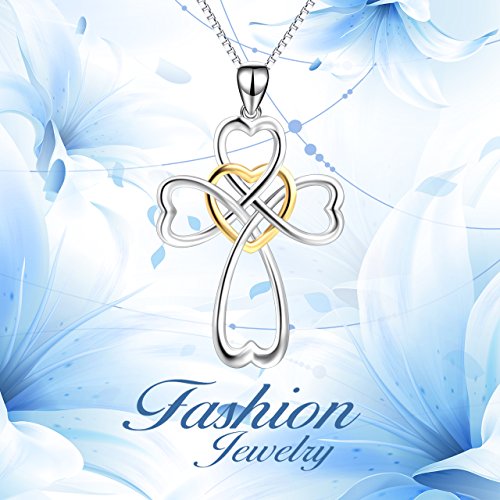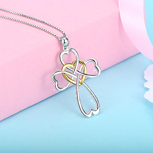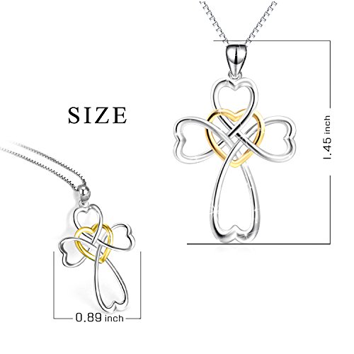 18K Gold Wire Heart Accent Infinity Cross Necklace