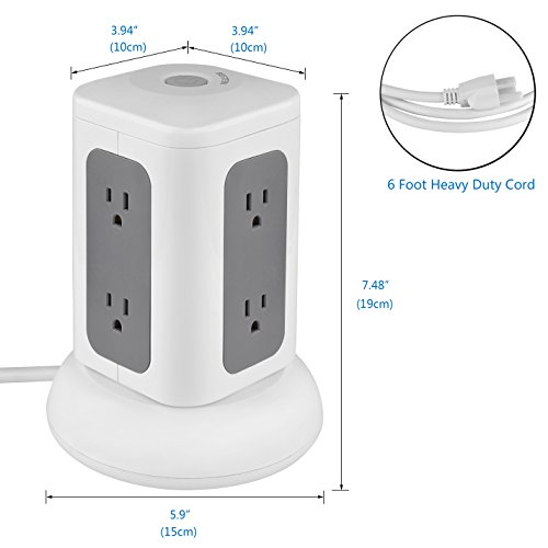 Charging Station Tower: New Advanced Multi-functional Power Strip, 6 AC outlets with built-in surge protection, charging and protecting your home and office electrical appliances/computers/laptops/printers/routers/speakers and more