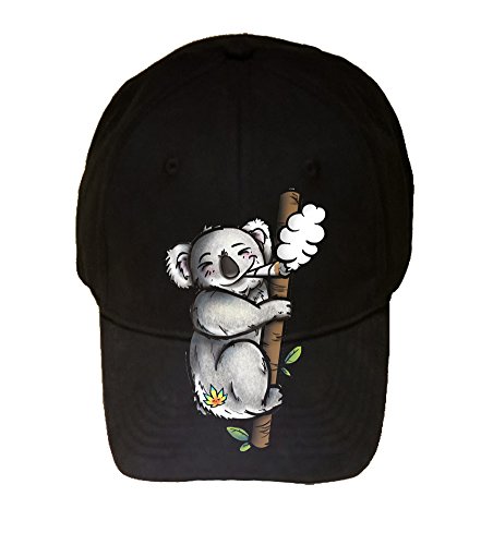 (Hat Shark)/Accessories/Hats/DIRECT FROM USA/100% Black Cotton Adjustable Hat - Pot Smoking Pals Koala