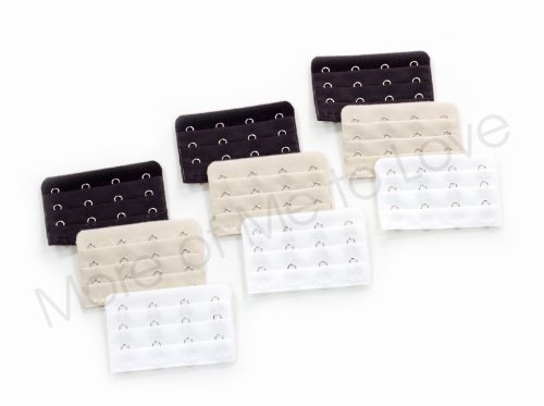 Four-hook Bra Extender 9-pack (3 x black, 3 x white, 3 x beige)