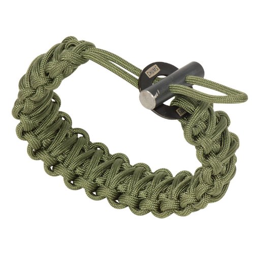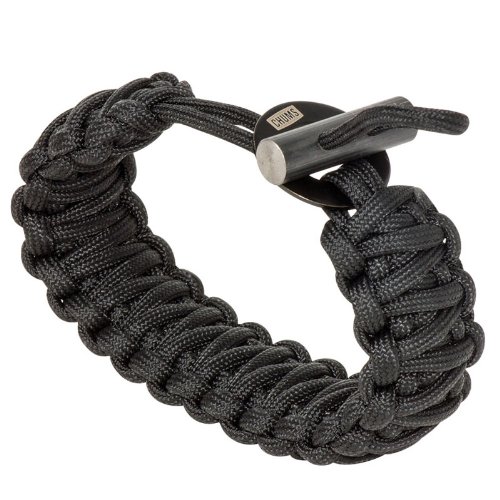 The Smokey paracord bracelet features a fire-starting steel and firestone closure. Perfect for an avid outdoorsman or camper, this large, adjustable paracord bracelet deploys for 16 feet of high-quality paracord. To make a spark, hold the firestone by the paracord in one hand. Hold the steel washer in the other hand. Place the washer against the firestone. Firmly scrape the washer down the length of the firestone.Feature