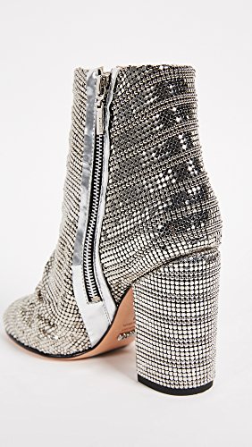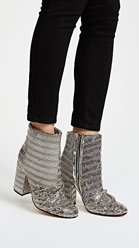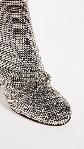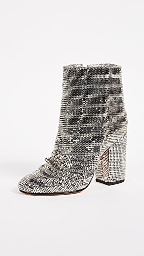 Product DescriptionA slouchy sheath of metallic chains cover these edgy Schutz booties. Mirrored leather trim frames the exposed side zip. Covered, block heel with rubber cap. Leather sole.0
