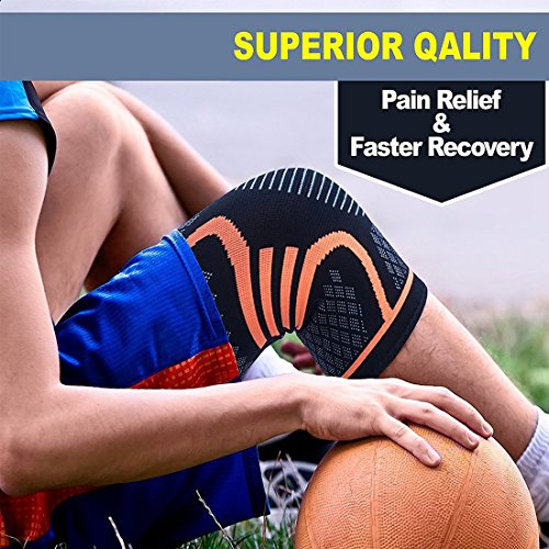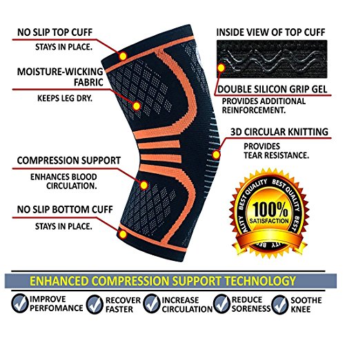 -. Feature : PAIN RELIEF: Feel the Advantage of new 4 way stretch Fabric, with the perfect blend of breathable Nylon and Lycra. Feel comfortable on the skin and offers a NON-SLIP GRIP. No itching or irritation, no growth of bacteria despite heavy sweating. / ANATOMICALLY SHAPED to prevent injuries and accelerate your recovery. Textured lining allows for better breathability and anti-migration. Their heating effect improves circulation and promotes muscular recovery. Great for healing, recovery and physical rehab. / ANTI-SLIP SILICONE gel strips and elastic support material to offer stable compression. No slipping, no rolling off, no sliding down. So you won't have to readjust them. They will stay put. / COMFORTABLE for EVERYDAY WEAR: The Knit Knee Sleeve is a slide-on sleeve that's low-profile and lightweight. Good knee support with no stiffness. No itching. Designed for full mobility & comfort. Easy to wear thanks to its light and soft material. Unisex. Can be worn all day. / RECOMMENDED FOR: walking, hiking, jogging, running, workout, cross training, cycling, gym, tennis, dancing, basketball and other exercises. And any indoors or outdoors activity that put stress on your knees.