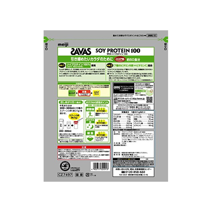 원본상품명: 明治 ザバス ソイプロテイン100 ココア味【50食分】 1,050g