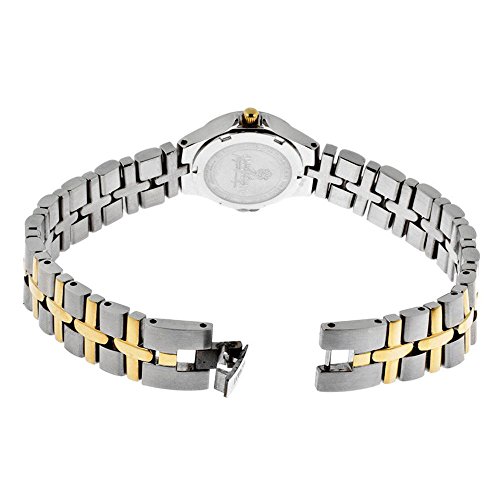 Discover the elegant design and radiant sparkle of the Invicta Women's Wildflower Collection 18k Gold-Plated and Stainless Steel Watch. A round silver dial showcases gold-tone hands, a single gold Roman numeral at the twelve o'clock position, gold baton hour indices, and black minute indices. Holding a flame-fusion crystal to protect the dial, a stationary 18k gold-plated stainless steel bezel is encrusted with 24 shimmering white crystals. Adding even more shine, the matching two-toned 18k gold-plated stainless steel bracelet features 18 white crystal accents in a decorative cross pattern where the bracelet meets the case. This timepiece uses reliable Swiss quartz movement and is water resistant up to 165 feet (50 meters).Wildflower Collection