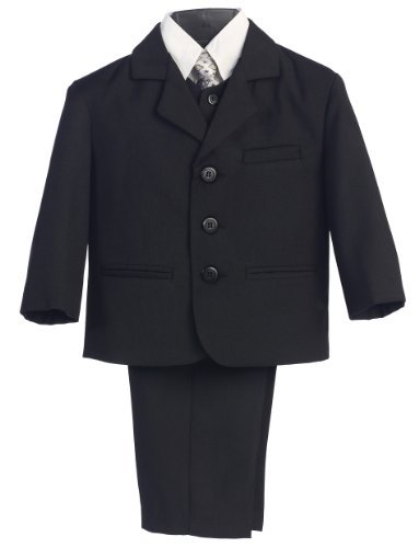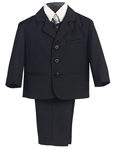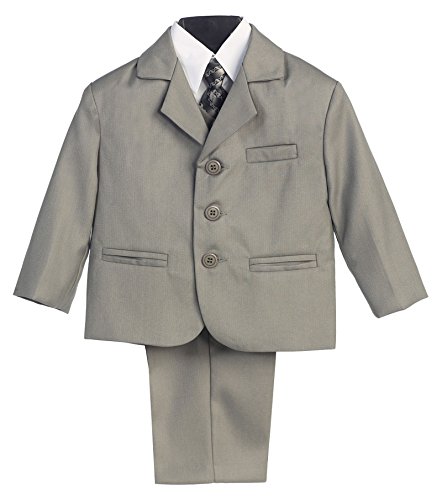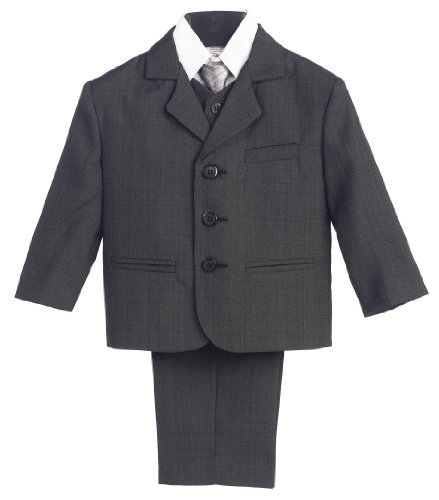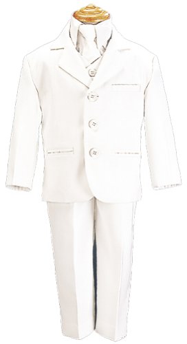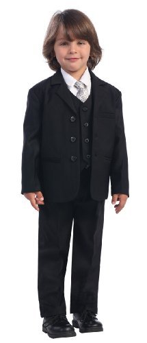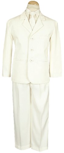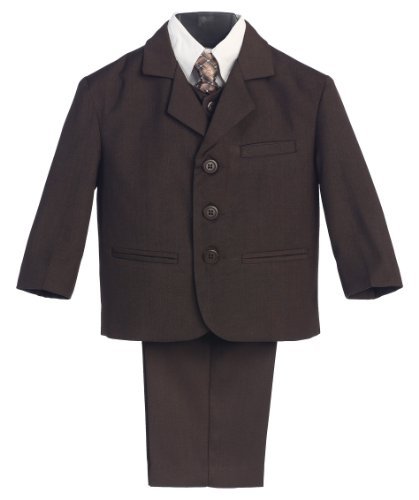 A handsome suit outfit for your boy. This brown suit comes with a 3 pocket jacket, white button down long sleeve shirt, matching button down vest and pants with a stylish coordinating tie. The perfect suit for church, holidays, weddings, first communion and other special occasions.