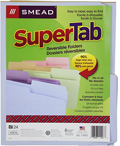 -. Title : Smead SuperTab File Folder, Oversized 1/2-Cut Tab, Letter Size, Assorted Colors, 24 per Pack (11907)