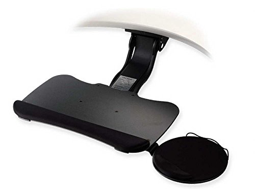 -. Feature : 1/4" Phenolic allows complete knee clearance / Tilt & swivel mouse surface with gel pad provides infinite adjustment / Foam palm rest (removable) for maximum ergonomic comfort / Mouse platform easily mounts right or left / 19.5" x 11.5", plus 8.25" diameter mouse surface