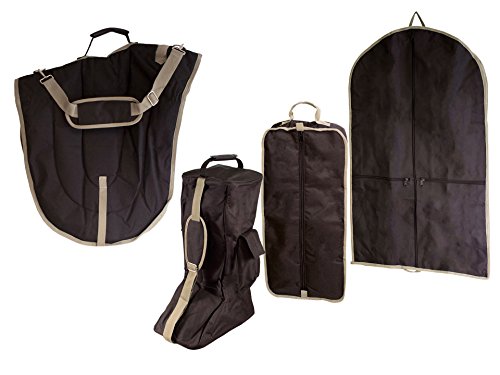 Derby Originals English Dressage Saddle with Bridle and Boot Garment Carry Bags (Set of 4), Black