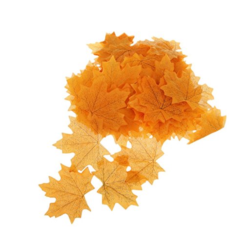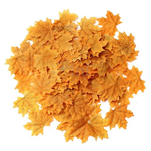 SunAngel 144PCS Artificial Autumn Maple Leaves Fall Silk Leaves for Wedding Party Decoration (Yellow)