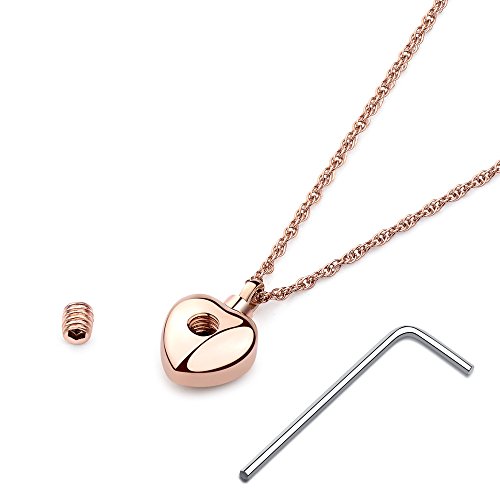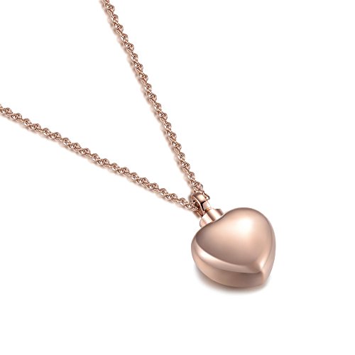 LUWAK 18K Rose Gold Heart Pendant Necklace Cremation Urn Jewelry Nacklace Perfume Heart Pendant Necklace Ashes Keepsake Memoria (Small 1/2")