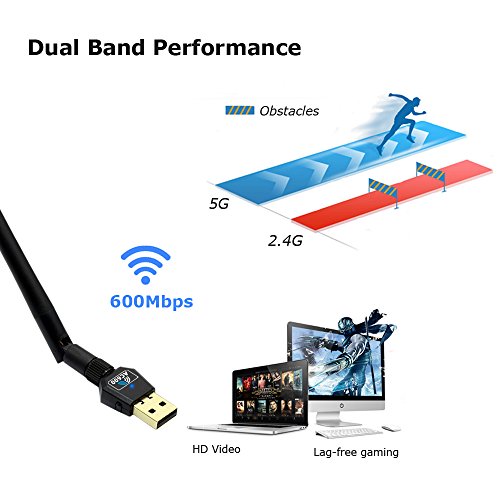 U-Tote AC600Mbps Dual Band USB WiFi Adapter Antenna, 802.11ac 2.4G/5G Wireless Network Adapter for Desktop Laptop, Support WinXP/7/8/8.1/10, Linux 4.1-4.4, 5.0, Mac OSX 10.4-10.12
