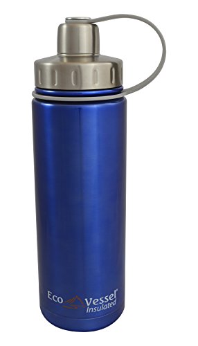 EcoVessel BOULDER TriMax Dual Opening Insulated Stainless Steel Water Bottle with Tea - Fruit and Ice Strainer - 20 oz. - Blue