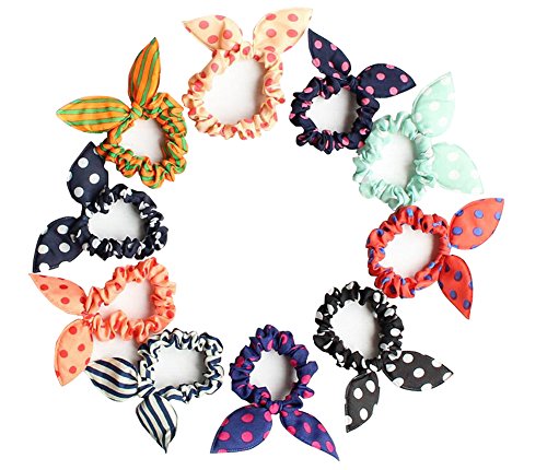 10PCS 2.3'' Diameter Bunny Ears Rubber Hair Bands-Ponytail Holder Elastic Cotton Stretch Hair Ties Hair Styling Tools Headband Scrunchie Hair Accessories...