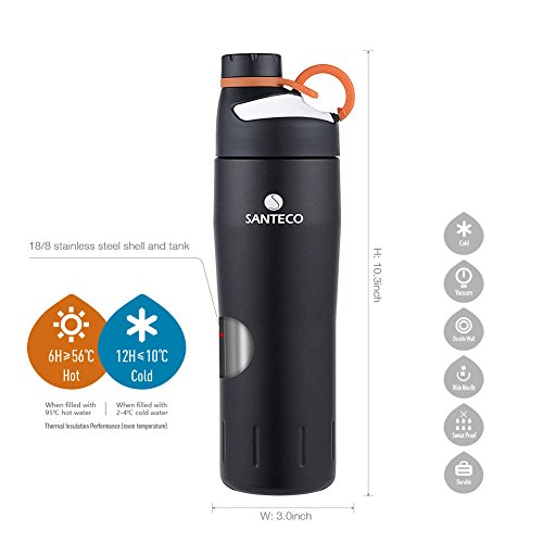 Santeco Oural Water Bottle, 20oz Vacuum Insulated Stainless Steel Flask