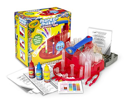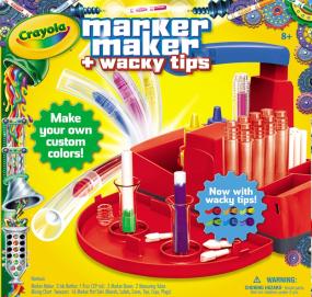 Experiment with color by making your own custom markers using the Crayola Marker Maker. Create up to 16 markers with Wacky Tips that change the way color lays down on the paper. This interactive kit has everything you need to get started, including three ink bottles, two marker boxes, two measuring tubes, a mixing chart, tweezers, and enough parts to make 16 one-of-a-kind markers. Kids ages eight and up will enjoy making their own marker colors and trying out their colorful creations.