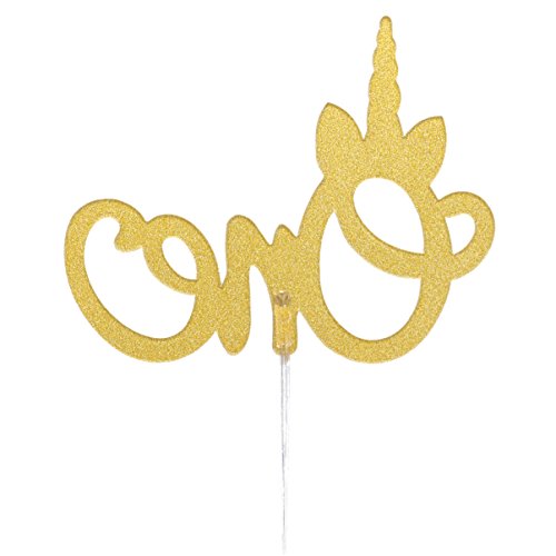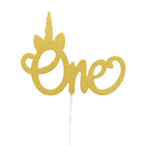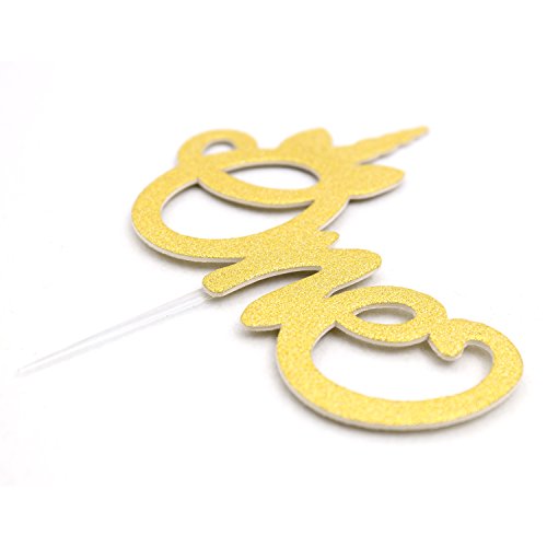 Unicorn One Cake Topper 1st First Birthday Party Decoration Handmade Double Sided Gold Glitter Stock