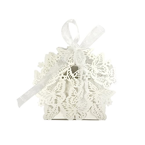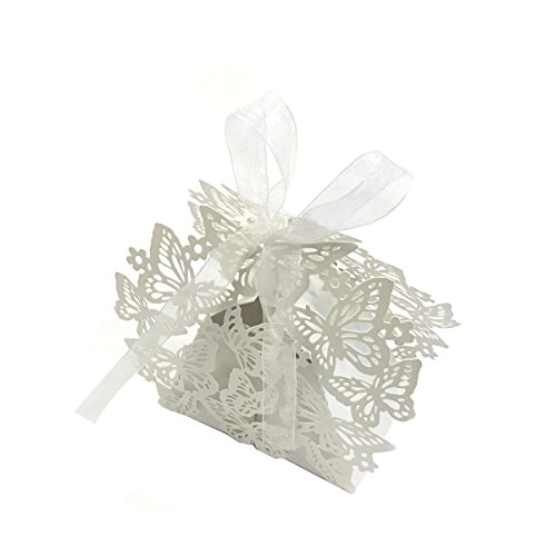 Wrapables Butterflies Wedding Party Favor Boxes Gift Boxes with Ribbon (Set of 50), White