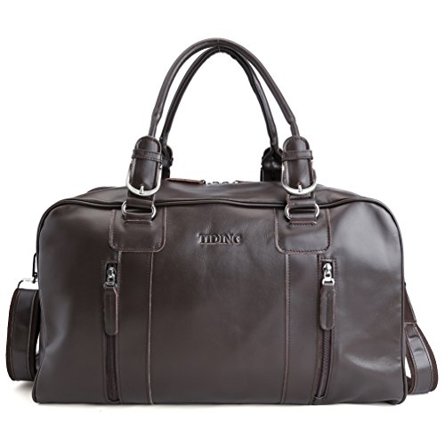 Tiding Men's Nappa Leather Travel Luggage Duffle Gym Bag