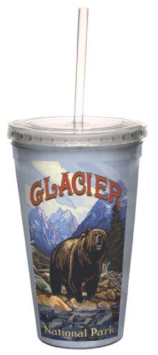 Tree-Free Greetings cc33264 Vintage Glacier National Park Grizzly by Paul A. Lanquist Artful Traveler Double-Walled Cool Cup with Straw, 16-Ounce