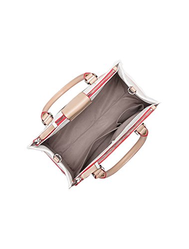 logo jacquard coated canvas ombre design dual handles + removable shoulder strap logo plaque on front + removable signature charm bridge snap + double zip closure exterior open pocket interior zip pocket + card slot 2 open interior pockets fully lined FABRIC + CARE coated canvas + leather trim imported FIT + SIZING 4.5" handle drop 21" shoulder drop 11.5" wide x 8" tall x 5.5" deep STYLE NUMBER style number 36195713Feature