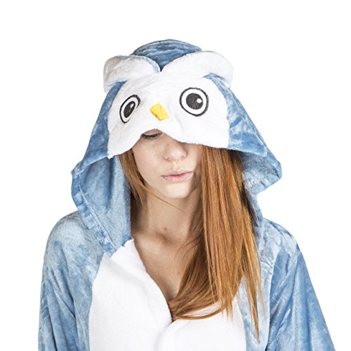 -. Brand : Juxy Couture -. Color : Blue -. Department : womens -. Feature : SIZING - Small: (Small) Medium: (Medium) Large: 5'6"-5'9" X-Large: (X-Large) / DETAILS - The adorable and eye-catching animal onesie designs all feature a hood with eyes, teeth, and nose for full effect. Matching tails and chest designs help complete your ultimate cosplay look! / COZY - A special blend of comfort and fun, these plush materials are soft to the touch and will keep you warm during those cold winter months. The button up closure allows you to quickly get dressed while the loose fit gives you the flexibility to easily wear over your existing clothes or jacket. / VERSATILE - Loose fitting materials allow you the flexibility of movement while maintaining style and comfort. The fun and whimsical designs will make sure you get noticed at your next furry convention or party. Carry your remote or keys around with you thanks to two front pockets. / CLEANING - Take good care of your new pajamas to prevent fading! The comfortable polyester material is recommended to be hand washed and laid flat to dry. If ironing is required, it is recommended to do so on Low heat only. -. Model : ADNOWL -. ProductGroup : Apparel -. ProductTypeName : ADULT_COSTUME -. Title : Juxy Couture Adults and Teens Owl Halloween and Christmas Costume for Women and Men