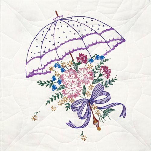 Fairway 92106 Quilt Blocks, Flower Umbrella Design, White, 6 Blocks Per Set