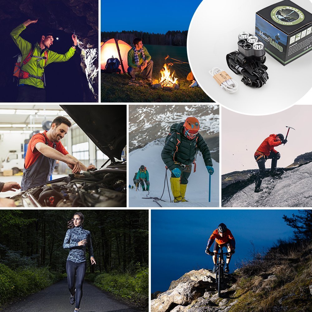 ◆ Since both hands are free, work in the open air, work in the dark, mountain climbing, bicycle light, hiking, camping, hunting, working in the warehouse, caving, night fishing, kayak, housing, construction work, car repair etc.