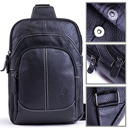 - HIGH-END GENUINE LEATHER SLING PACK: Select high quality cowhide as material.The cortex is delicate and soft, The leather is glossy and smooth. It is wearable and scratch-resistant. And it also is waterproof and dustproof.