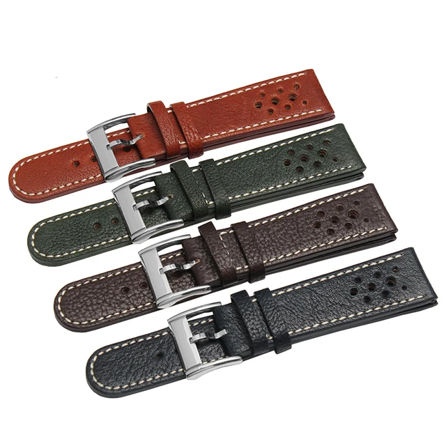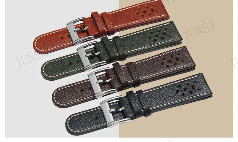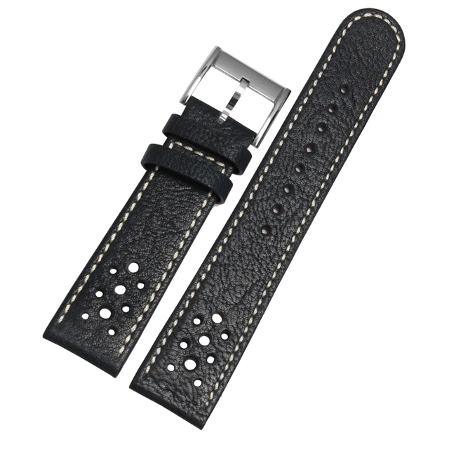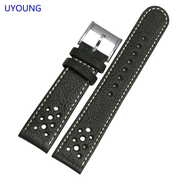 [해외] Uyoung 손목 20mm22mm 품질 정품 가죽 시계 밴드 남성 여성 블랙 시계 액세서리