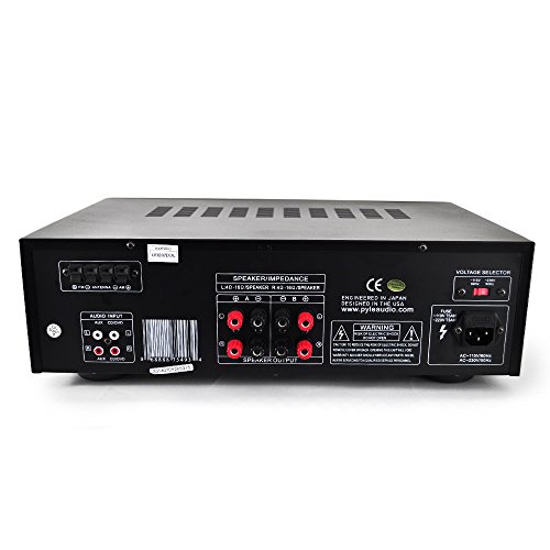 The Pyle PT265BT receiver features Bluetooth to stream wireless audio from your device. Play your entire MP3 digital music library from your cell phone, PC or Tablet. This amplifier receiver system features AM/FM radio with 50 station memory presets, digital LCD display, two microphone inputs with separate volume, bass, treble and echo controls -- to create a unique mixing experience. Create an instant karaoke party when you mix the two microphones over any audio that plays through the system -- sing along with your favorite radio station or Bluetooth wireless streaming audio from your device. You can also connect additional external devices like a CD player or another receiver through the AUX inputs. Upgrade your home entertainment system with the ability to turn any time into Karaoke time with the PT265BT Amplifier Receiver.Feature