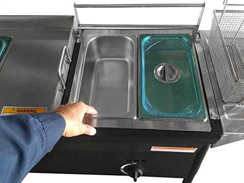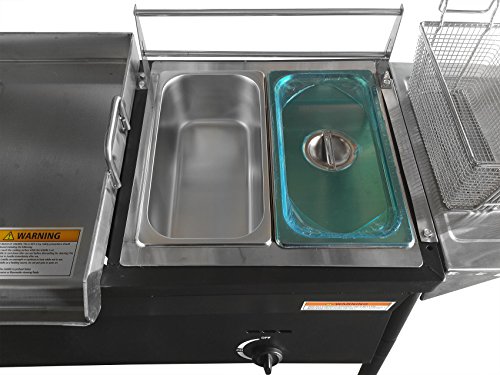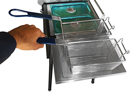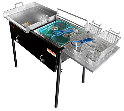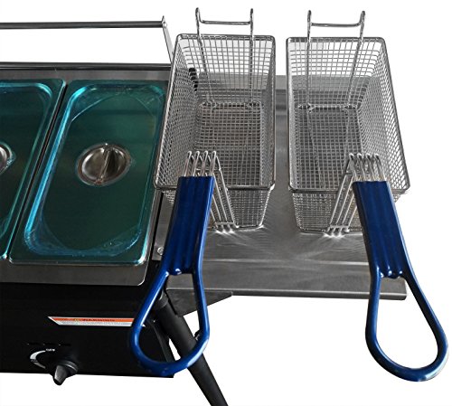 Preparing food on the go has never been easier thanks to the Portable Outdoor Gas burner Griddle Top cooking base. Easily bring this item to any outdoor event without hassle. Bioexcel outdoor two tank deep fryer can heat up quicker than any other two basket fryer. It features removable two baskets, stainless steel oil tank & griddle. This will let you cook all your favorite food quick and easy. Two fryer basket with carrying handles makes it easy to move, removable oil makes cleanup easier. Perfect for many uses such as restaurants, supermarkets, fast food stands, snack bars or home.Feature