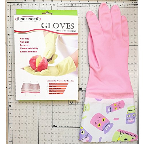 KINGFINGER Rubber Latex Waterproof Dishwashing Gloves for Kitchen,Precision Flocking Household Cleaning Gloves ( Lengthen,Pink, Medium )