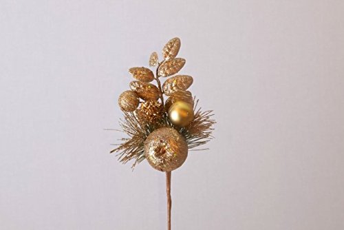 Queens of Christmas WL-PCK11-AP-GO Glittered Christmas Pick with Apple & Ball, 11", Gold